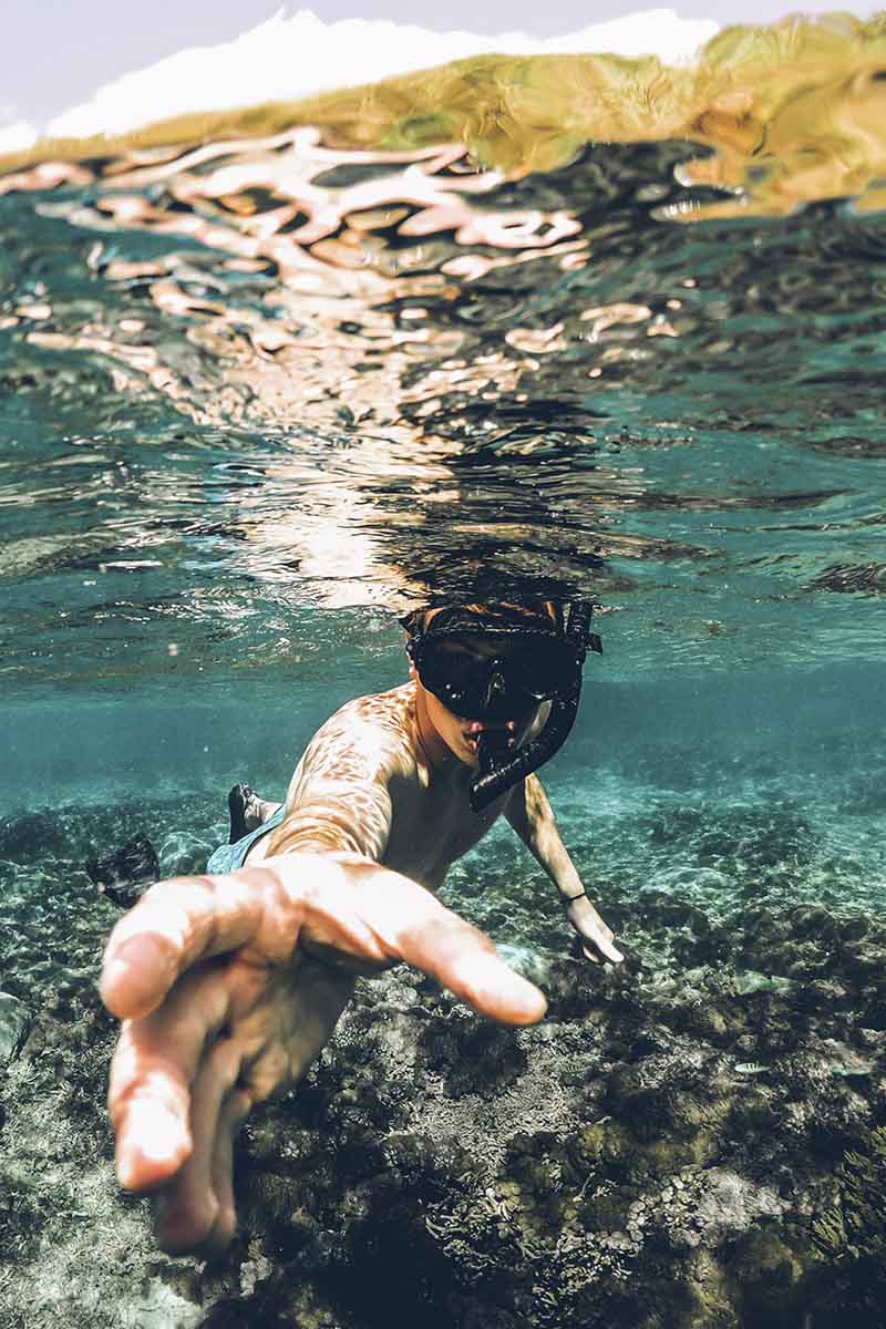 غواصی و شنا با ماسک و لوله در ساحل مکسر و خلیج بنود امکان‌پذیر است.